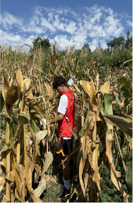 深入田间劳作,高温烈日下体验农活。“现在正是炎炎夏日,也正是玉米收割、辣椒采摘的季节,村里大部分家庭只有老人和小孩,正是需要劳动力的时候。”驻村队员beat365官网登录中文唐庚老师带领志愿者在赶往目的地的途中介绍到。