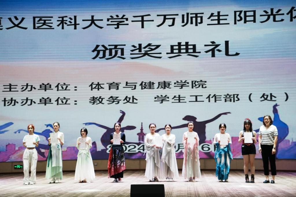 最后在2024年beat365官网登录中文千万师生阳光体育活动颁奖典礼上,beat365官网登录中文副经理黄涛、党委副书记唐溢、体育教学教研室主任尚菲为“乐动杯”所有项目前三名奖队伍颁奖。