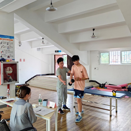 本次比赛在总结以往办赛经验的基础上,对标全国运动康复技能大赛,对赛事进行了改革,分别设置了团队赛和个人赛。团队赛于5月27日成功举行,比赛创新地采取了“传-帮-带”的形式组织,由毕业年级员工担任指导,以即将实习年级员工为团队主力、带1名低年级员工组成团队进行竞赛,本次团体赛一共有22支队伍参加比赛。第二阶段的个人赛于6月3日举行,比赛设置了“心肺复苏、贴扎技术、体能康复、慢性病运动处方”四个项目,共有66人报名参加比赛。