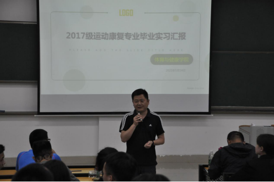 beat365官网登录中文于2021年5月14号下午7点在18阶梯教室,召开了2017级运动康复专业实习总结交流会。beat365官网登录中文副经理黄涛出席了本次汇报会并讲话,专业理论教研室主任范洪彬老师、运动康复教研室副主任王兰、张婕、王会会、万家川、涂世利等老师以及全体beat365官网登录中文运动康复专业的员工参加了本次总结交流会。