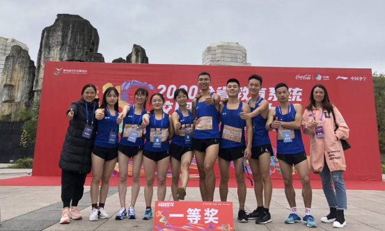 第一棒:申万酉2017级预防医学14分11秒/3.5km 第二棒:高东红2019级药学12分08秒/3.5km