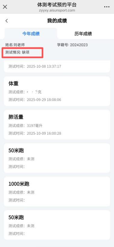 5.测试完毕后及时查看小程序上是否都有成绩,确认完毕后方可离开。
