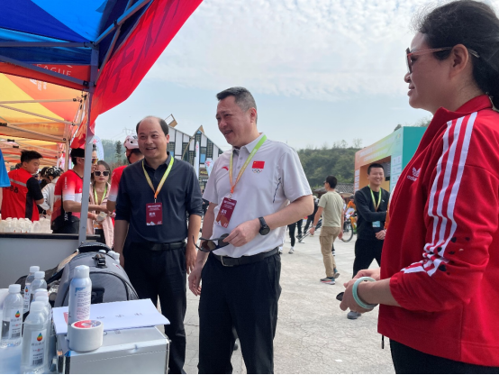 赛事期间,贵州省体育局党委委员、副局长肖俊来到公司的运动康复服务点,对参与防护的员工表示了关心,对公司的运动防护工作表达了认可。
