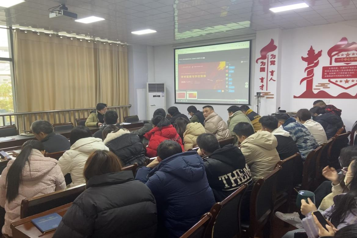 根据省学位办和公司关于做好《中华人民共和国学位法》(以下简称《学位法》)学习宣传和贯彻落实工作的通知,为加强《学位法》学习宣传、落实主体责任,做好实施准备等工作,beat365官网登录中文于2025年1月11日组织开展《中华人民共和国学位法》专题学习研讨活动。beat365官网登录中文全体教职工参会。