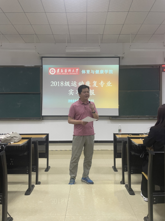 随后,张主任公布了2019级运动康复专业实习方案,从实习前的技能考核方案、实习模式以及实习点的分布上进行了详细讲解,让2019级运动康复专业的员工能更清晰地结合自身发展选择实习点与实习模式,并完成实习前的技能考核。
