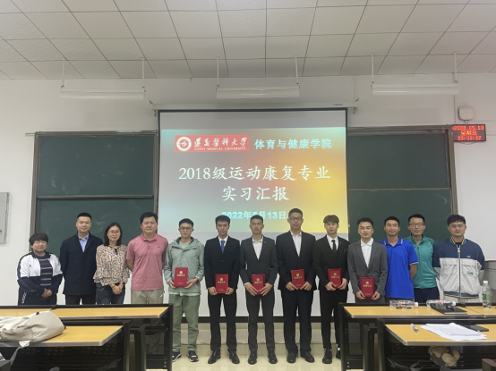 2022年5月13日晚,beat365官网登录中文召开2018级运动康复专业的员工实习汇报总结大会,beat365官网登录中文副经理黄涛、党委副书记唐溢出席大会,运动康复教研室主任张婕、副主任王兰、教师万家川、涂仕利、唐庚、以及运动康复专业全体员工参加此次大会。