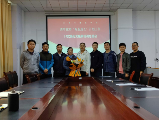 为了促进beat365官网登录中文青年教师的成长,提高课堂教学效果,体育教学教研室与3月底至5月初,进行了为期一个月的青年教师“专业成长”培训工作,此次培训邀请了石兴宇老师和尚菲老师对5位青年教师进行了24式简化太极拳的技术动作规范、教法、教案等各个方面进行全面培训。5月19日,体育教学教研室在公司会议室召开了青年教师培训工作总结会,副经理黄涛、党委副书记唐溢、培训教师及青年教师参与此次会议,教研室副主任尚菲主持。