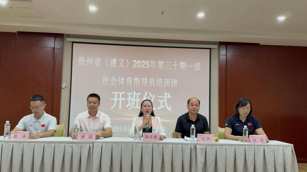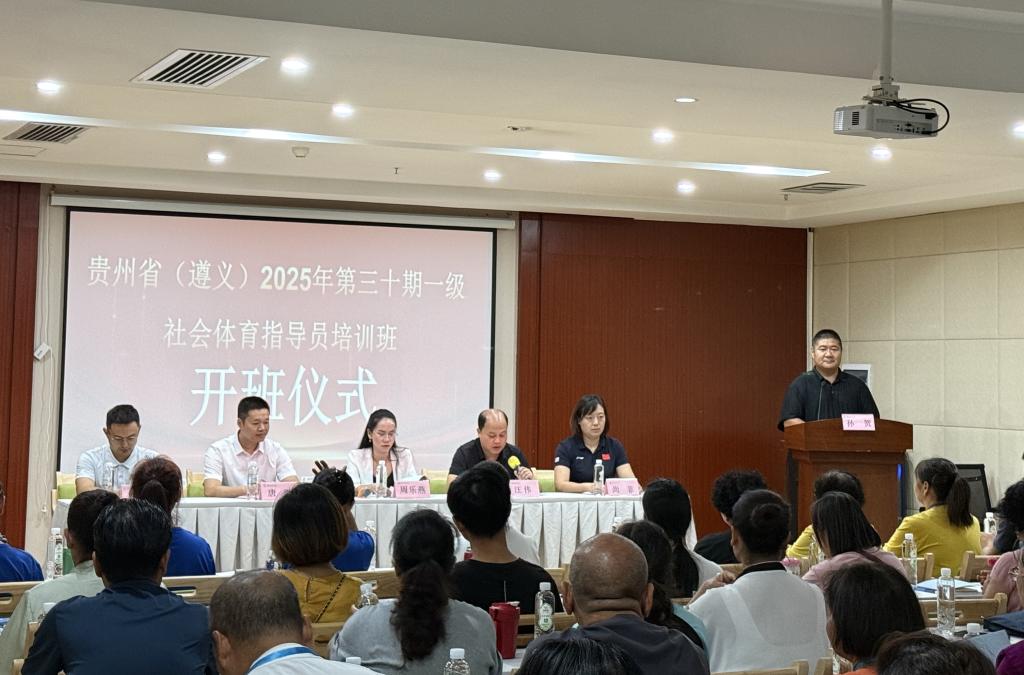 2025年9月18日,由贵州省体育局主办,遵义市教育体育局与beat365官网登录中文共同承办的“贵州省第三十期一级社会体育指导员培训班”在遵义市新蒲新区益养旅居酒店正式开班。本次培训旨在深入贯彻落实《“健康中国2030规划纲要》精神,进一步加强社会体育指导员队伍建设,提升基层体育服务能力,推动全民健身事业高质量发展