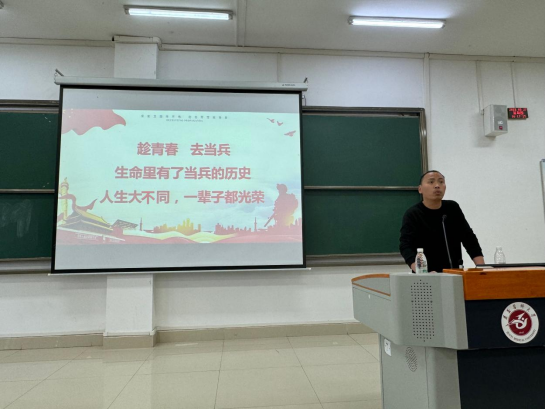 集团武装部国防教育科副科长王新华担任宣讲嘉宾,他以《趁青春 去当兵》为主题,从当兵十大好处、学业优待政策、如何调整身体状况应对体检中的问题等话题向同学们做了分享。并对同学们的相关问题进行了现场解答。